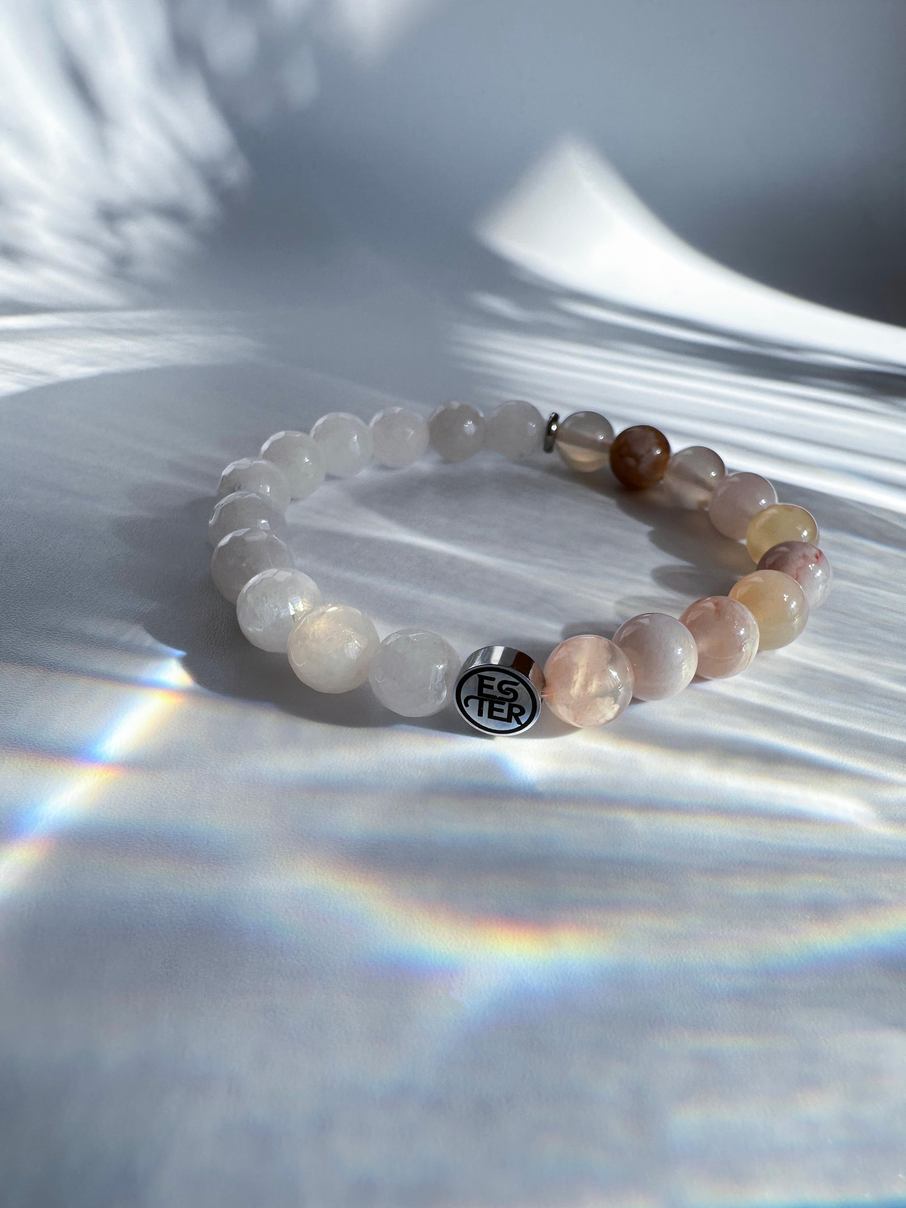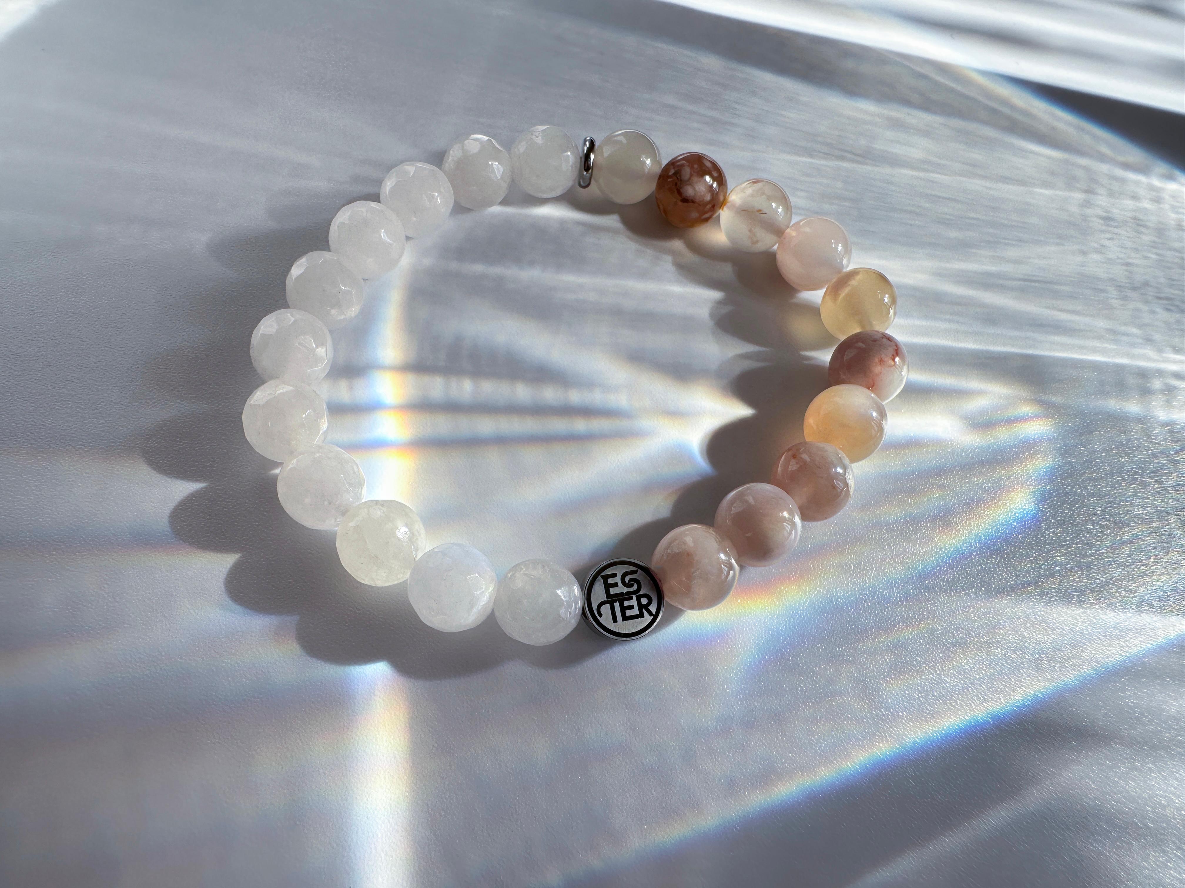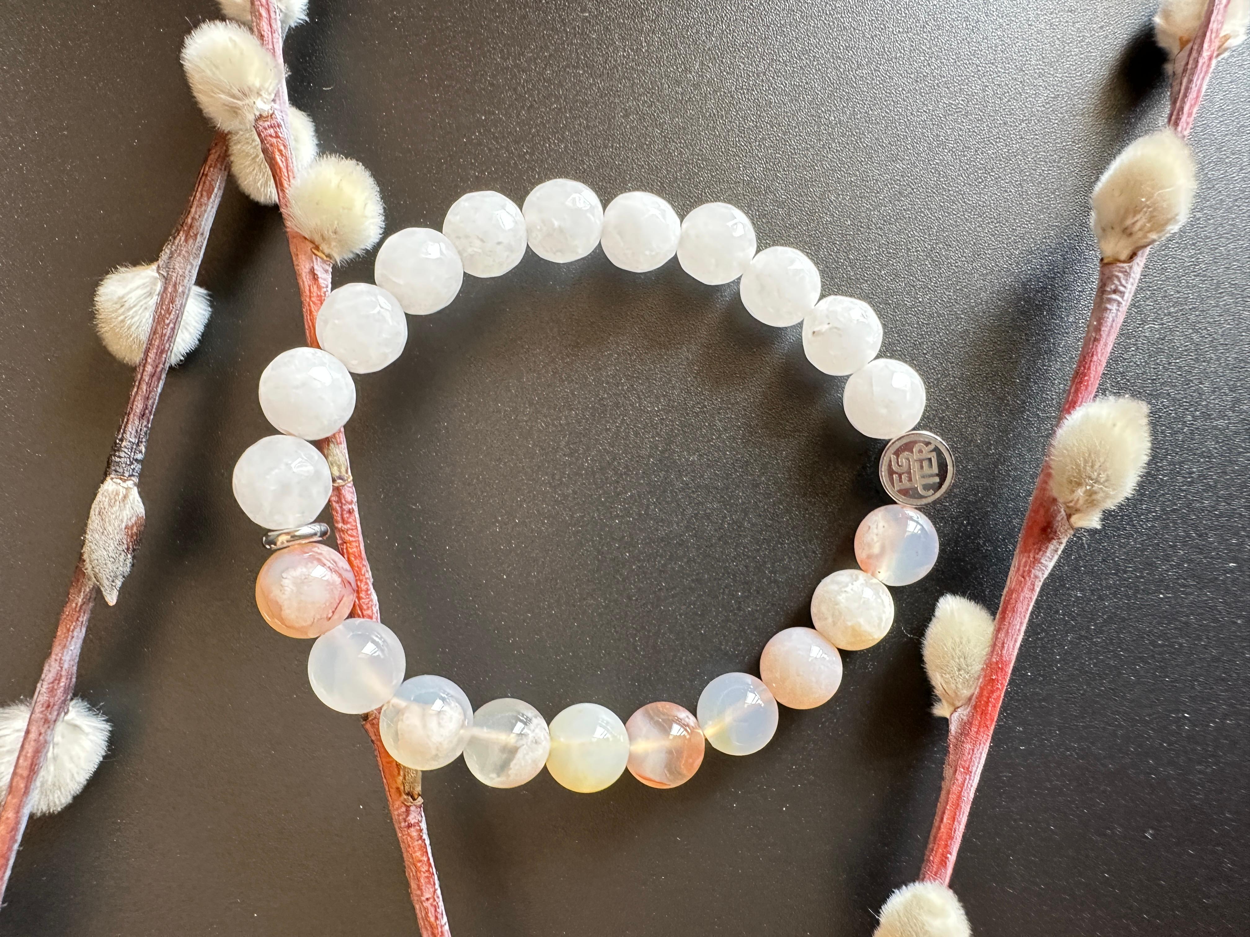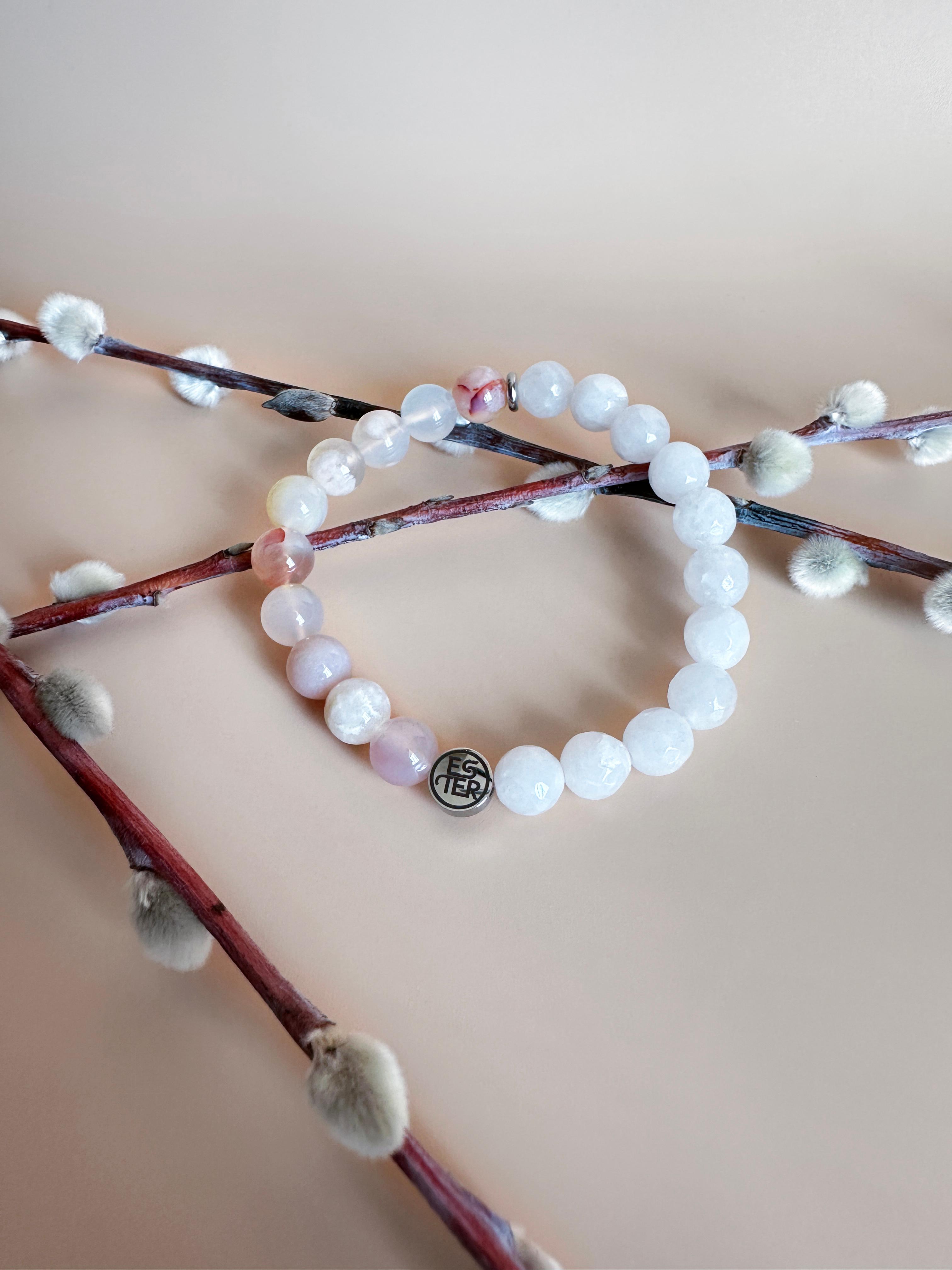 Энергетический браслет из натуральных камней — стильный аксессуар, сочетающий природную красоту и гармонию. Каждый элемент выполнен из минералов, собранных вручную, что придает изделию уникальный рельеф и глубину оттенков. Роскошное украшение "Нефритовый цветок" из природных камней, созданное для тех, кто ценит естественную красоту и энергетическую силу минералов. Браслет сочетает в себе нежный агат «Сакура» (или Цветочный агат) и благородный белый нефрит, создавая гармоничное сочетание природной энергии и изысканного стиля. Универсальный дизайн подходит как для повседневного образа, так и для вечернего выхода, дополняя образ без излишеств. Модель легко сочетается с одеждой любого стиля благодаря нейтральной цветовой гамме и минималистичной форме. Идеальный выбор для тех, кто ценит экологичность и индивидуальность. Подарите себе или близкому человеку аксессуар, который станет символом связи с природой и внутреннего баланса.